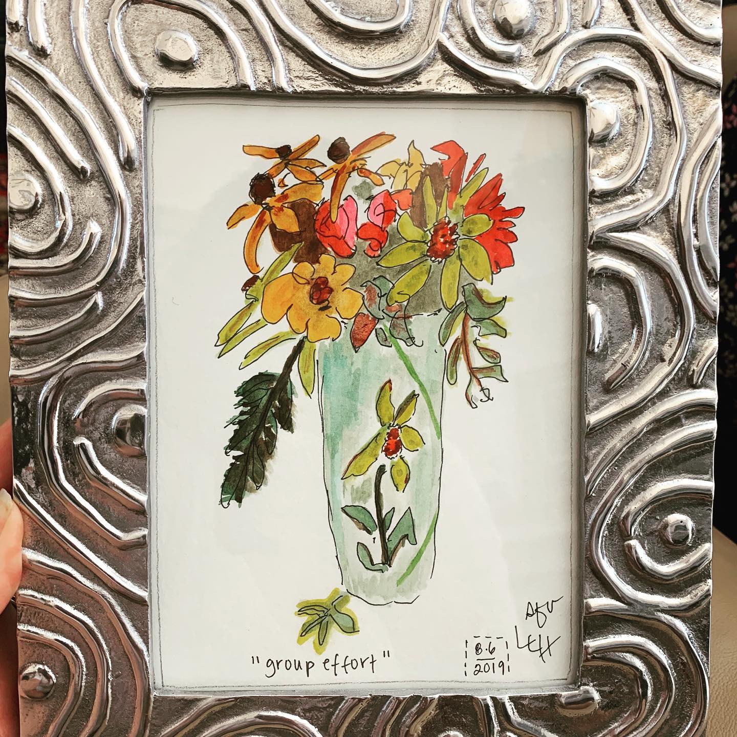 In January 2019 Lucinda offered to teach Mike Seamon and I art lessons! While Mike and I were thrilled and acted like school kids, which meant that Lucinda had her work cut out for her! But being the true teacher she is, on our first day she had printed out sheets for us with tons of information and color combinations etc. While she couldn't physically speak, she commanded the table and we listened! She would write on a dry erase board and hit the table with her hand when she needed our attention! She would punch her fist in the air when she wanted our colors to be bolder! Her eyes would light up and she would give us a thumbs up when our painting was good and if it wasn't just so..... she would stare at the painting then write what we needed to improve on! Her last painting was 3 weeks before she died. She had stopped painting a week or two before because it was too difficult to hold a brush and too frustrating for her. I asked her if she and I could do one together. She agreed, she did the outline and I painted it. This painting is so very special to me. This woman who was being faced with new challenges in her life was challenging and encouraging us to do better! We met every Tuesday morning so of course my painting became #TuesdaysWithLucinda.